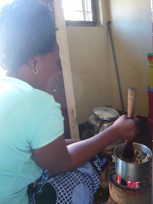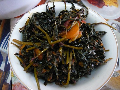お次は、家の裏の畑でMatenbeleと呼ばれる緑の野菜を摘む。