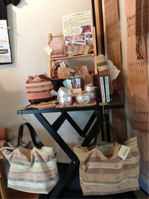 この織物、オーナーさんが昔住んでいたタイのチェンマイで、少数民族のカレン族から買い付けされているもの。