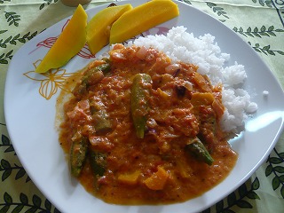今日のお昼ご飯は、オクラのココナツシチューを作った。