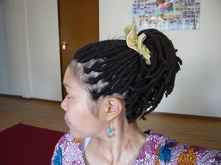 ポイントは、Matandikoさんが遊び心きかしてアレンジしてくれたカンガ地のボタンと、リボン。