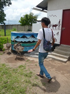 写真とか載せられるの恥ずかしがりそうな二人なので、ムベヤ動物園でダチョウを追いかけてる後姿をパシャリ。