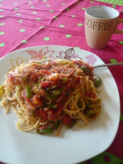 久しぶりの手料理は、トマトソーススパゲッティー♪