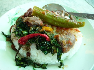 昨日、屋台で食べた昼ごはん「ご飯とシチュー全部のせ」